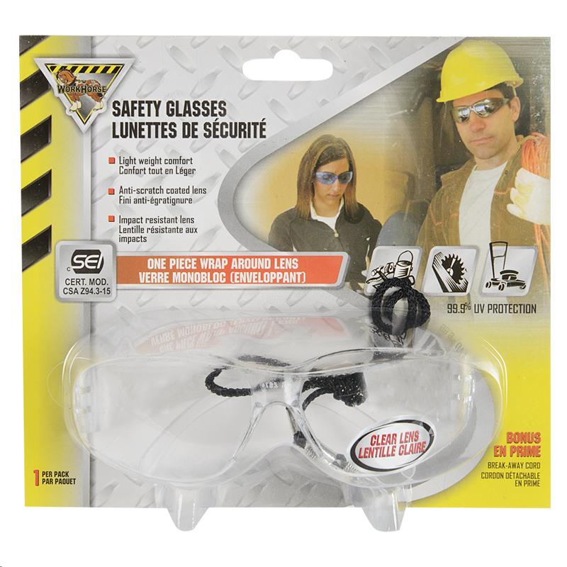 WORKHORSE SAFETY GLASSES WRAPAROUND CLEAR