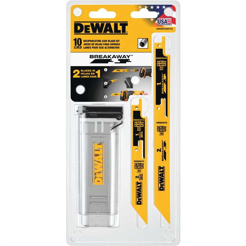DEWALT 10PC RECIPROCATING BREAKAWAY BLADE SET W/CASE DWABK410SETCS