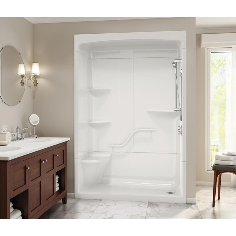 MAAX CAMELIA 6034 3 PC SHOWER W/GRAB BAR & ROOF LEFT SEAT RIGHT DRAIN WHITE